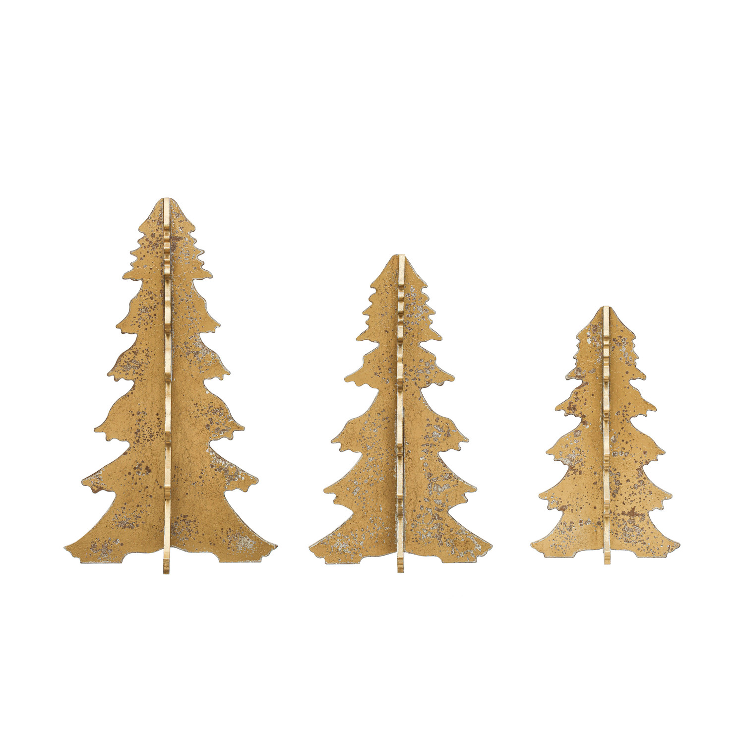 Catalog Name: 9-1/4" Round x 15-1/2"H MDF Interlocking Laser Cut Tree, Distressed Gold Finish, KD