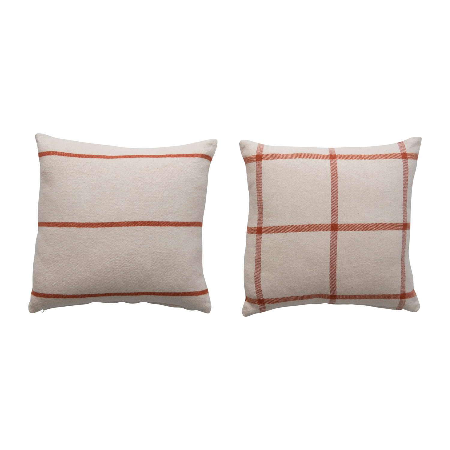 Catalog Name: 18" Square Cotton Flannel Pillow with Pattern, Cream and Rust Color, 2 Styles