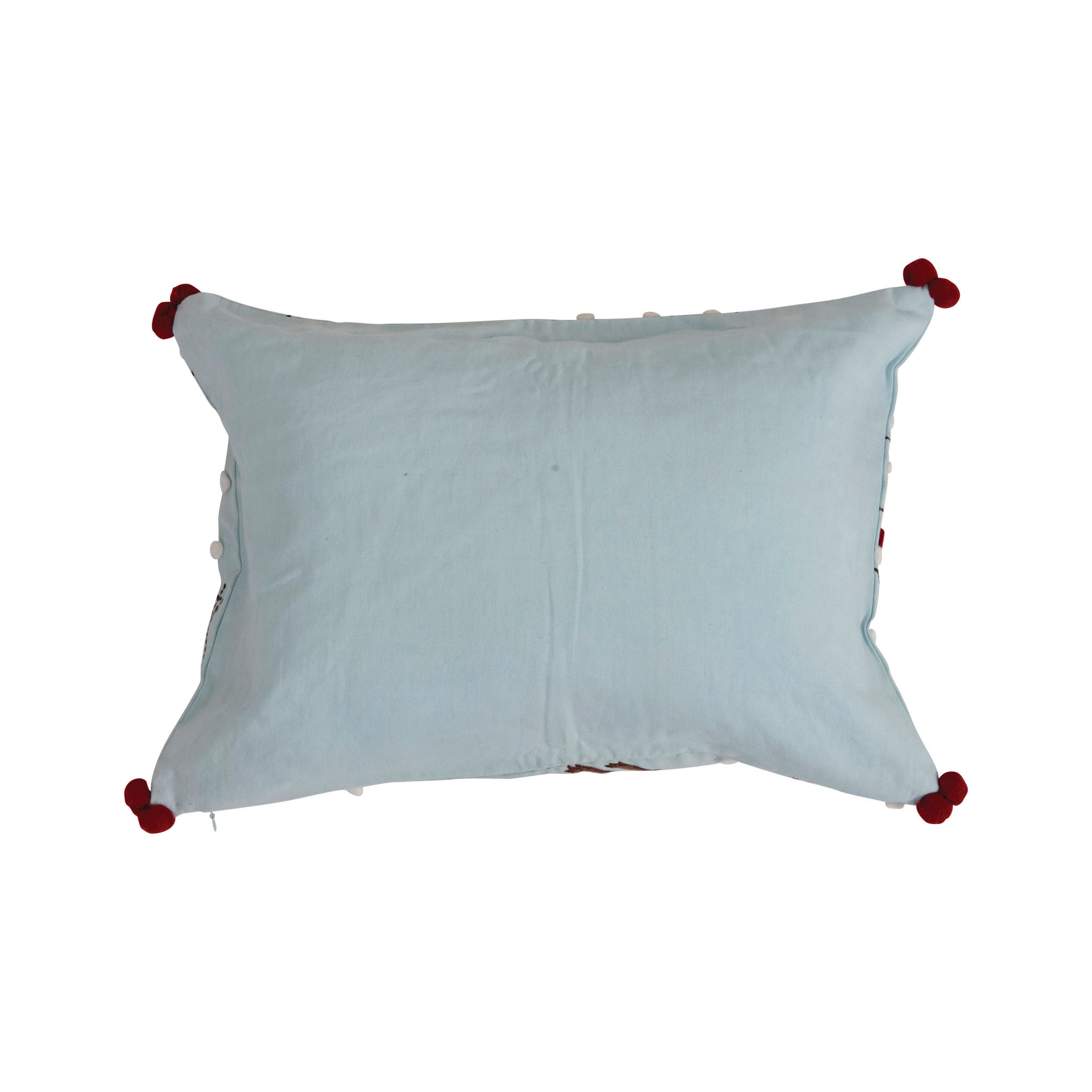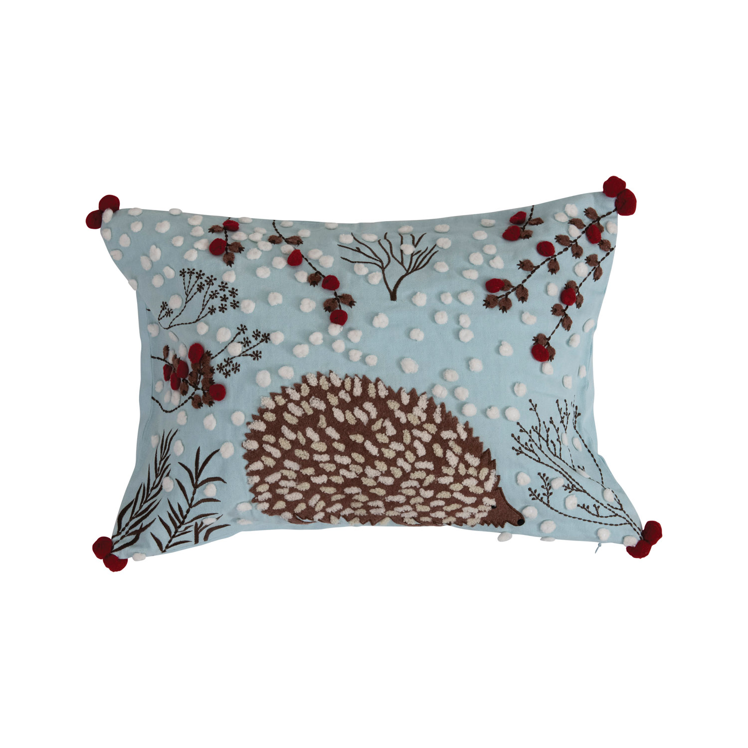 Catalog Name: 20"L x 14"H Cotton Lumbar Pillow with Hedgehog, Applique and Pom Poms, Multi Color