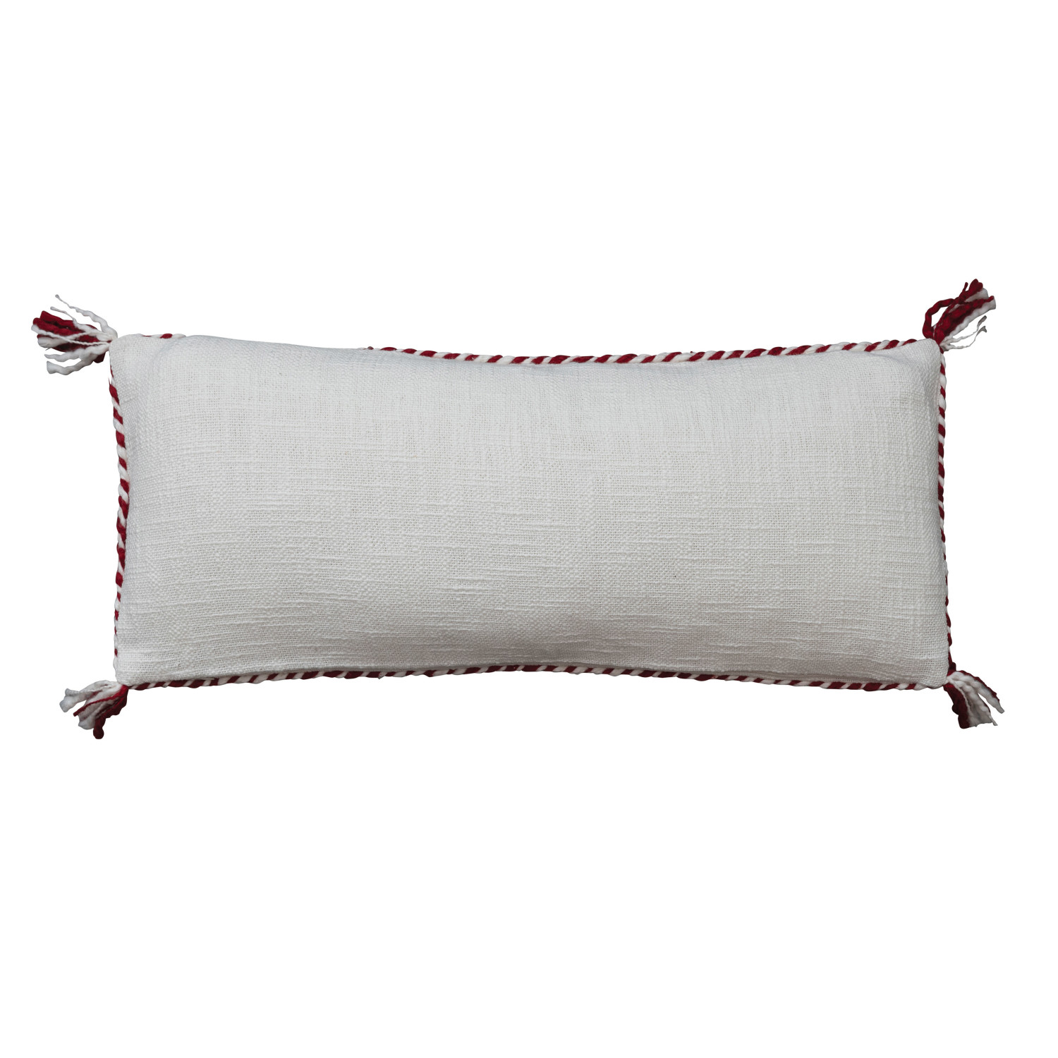 24"L x 10"H Cotton Lumbar Pillow w/ Holly, Snowflake, Embroidery, Candy Cane Piping & Tassels