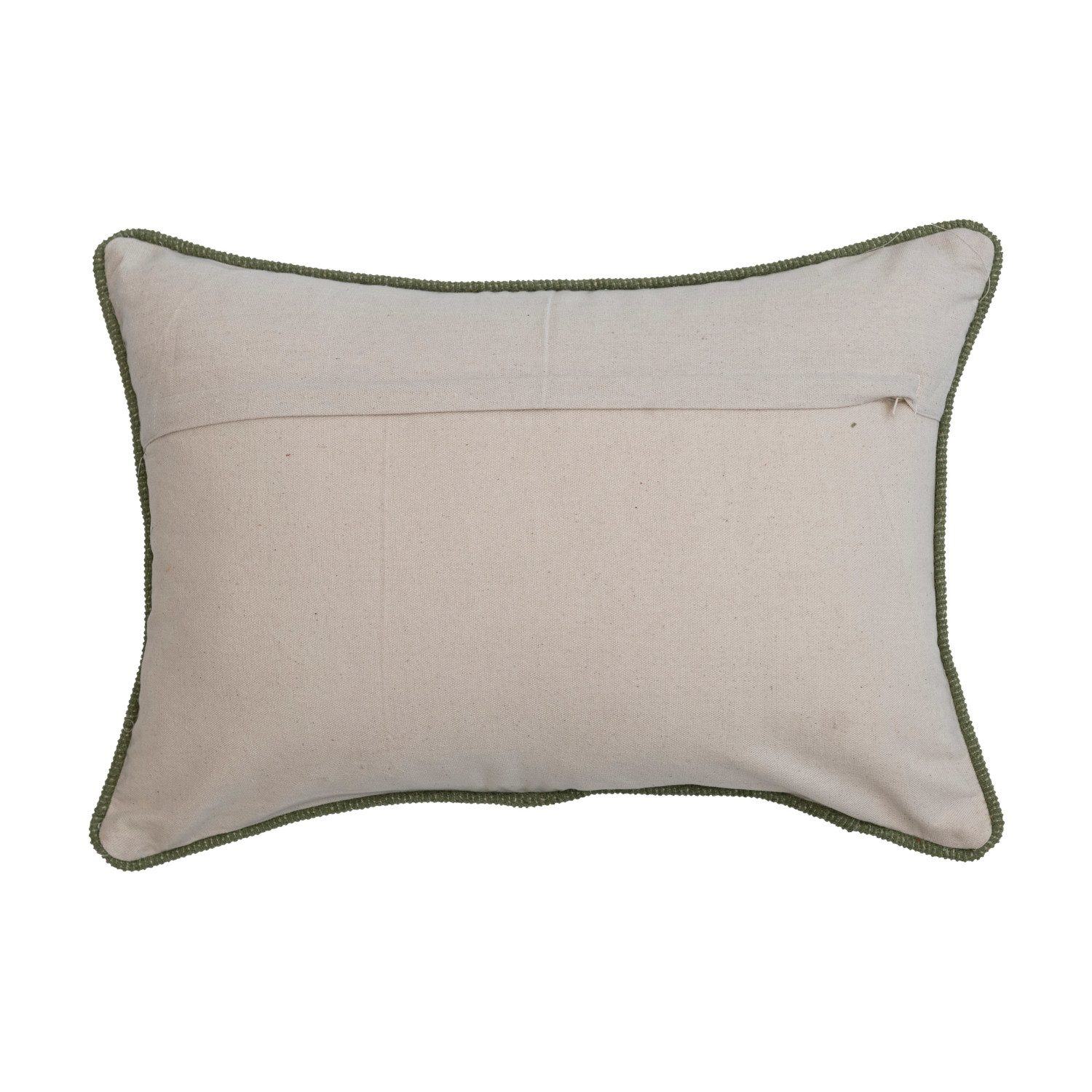 20"L x 14"H Cotton Lumbar Pillow w/ Appliqued Trees, Green & Cream Color
