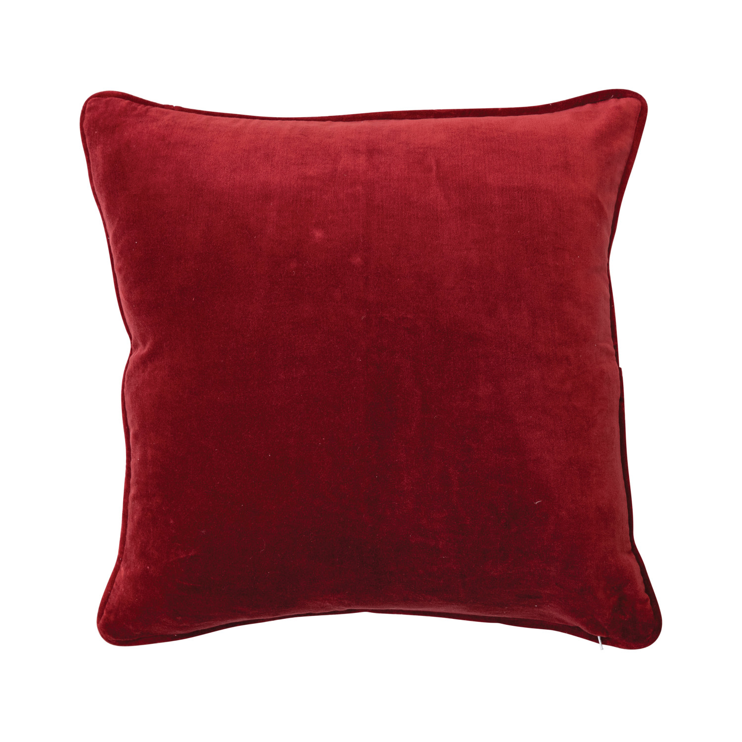 20" Square Cotton Printed Pillow w/ Embroidery & Burgundy Velvet Piping & Back