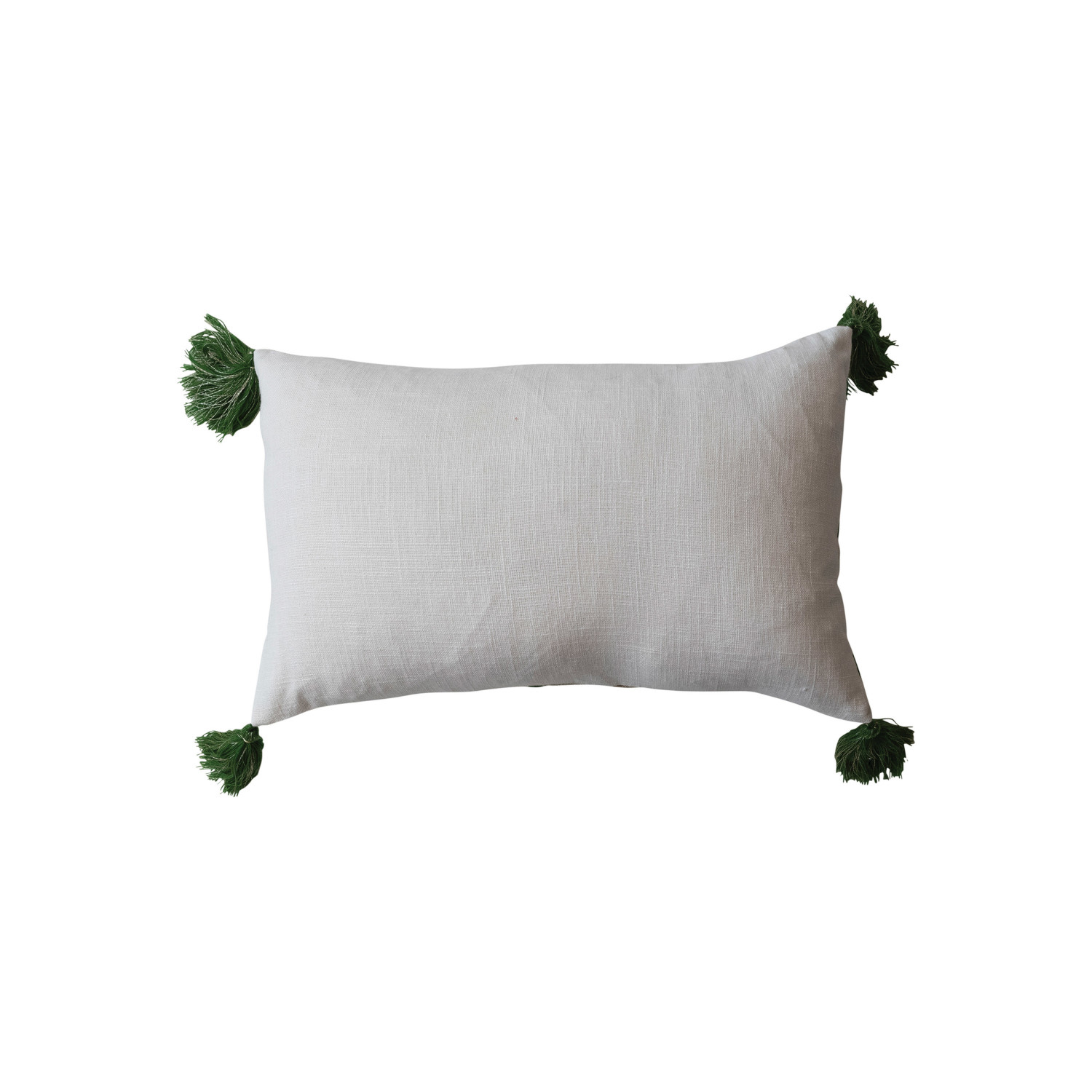 Catalog Name: 22"L x 14"H Cotton Embroidered Lumbar Pillow w/ Pattern, Metallic Gold Thread & Tassels, Natural & Green