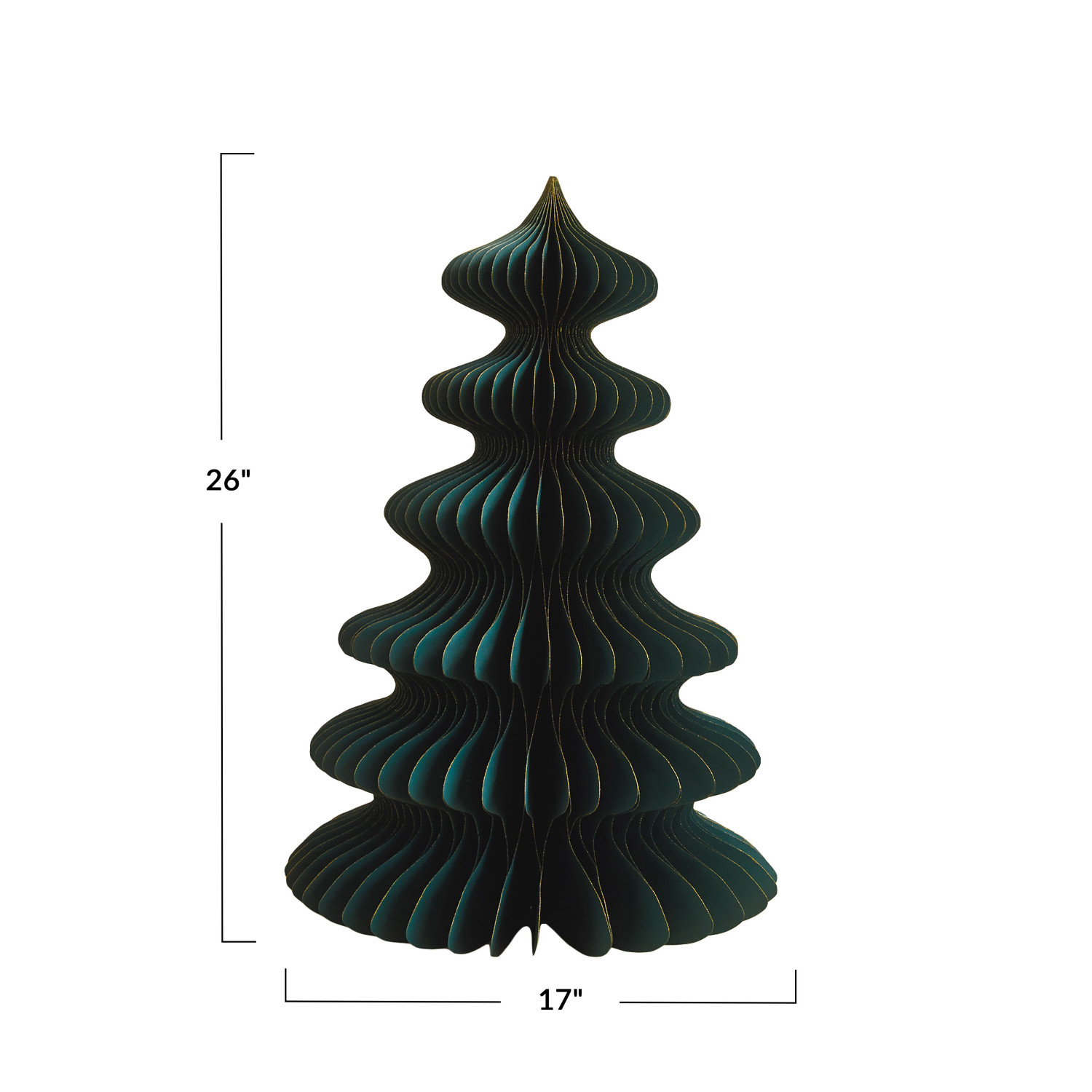 Catalog Name: 17" Round x 26"H Paper Folding Honeycomb Tree w/ Gold Glitter, Teal