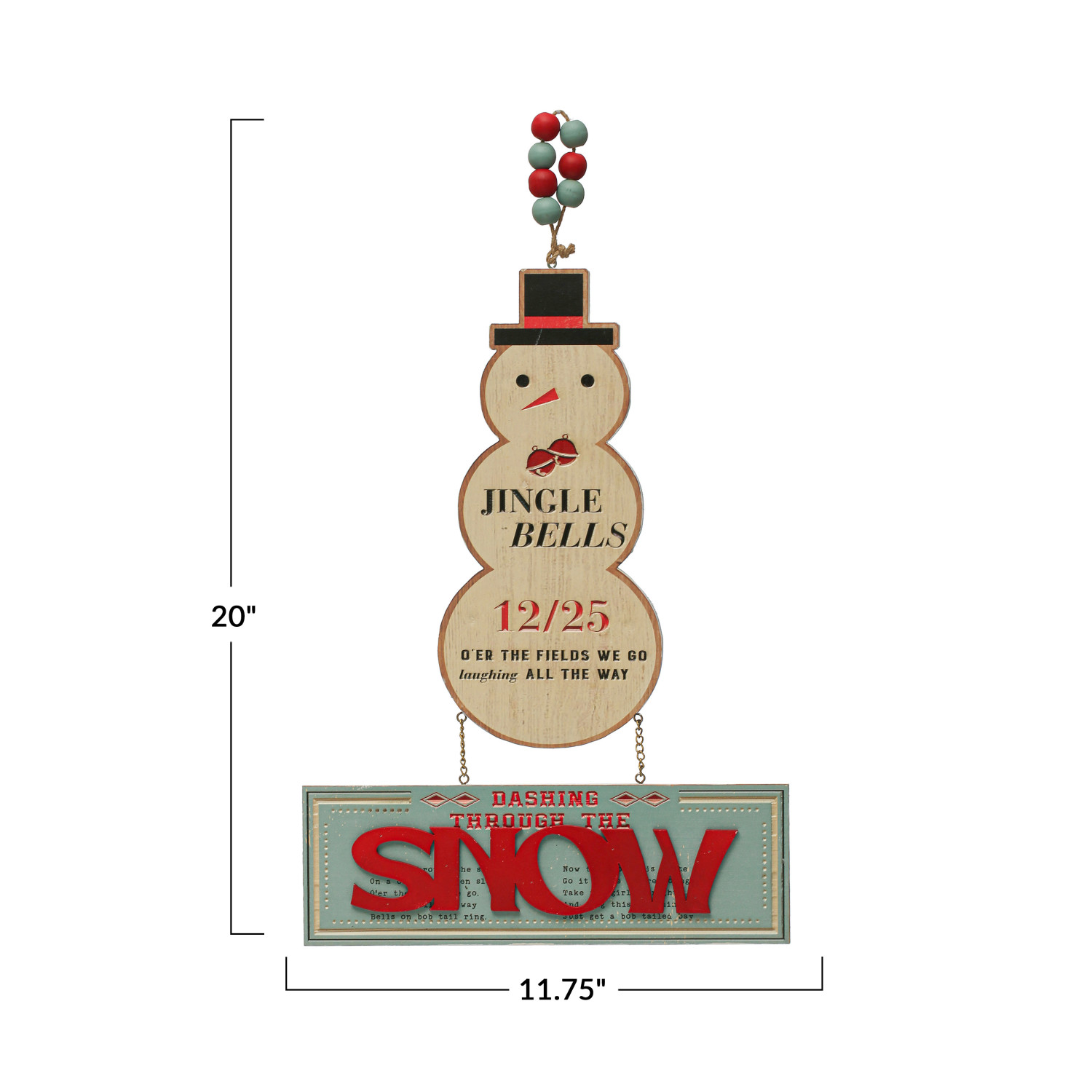 Catalog Name: 11-3/4"W x 20"H MDF Wall Hanging w/ Snowman & Wood Beads "Snow", Multi Color ©
