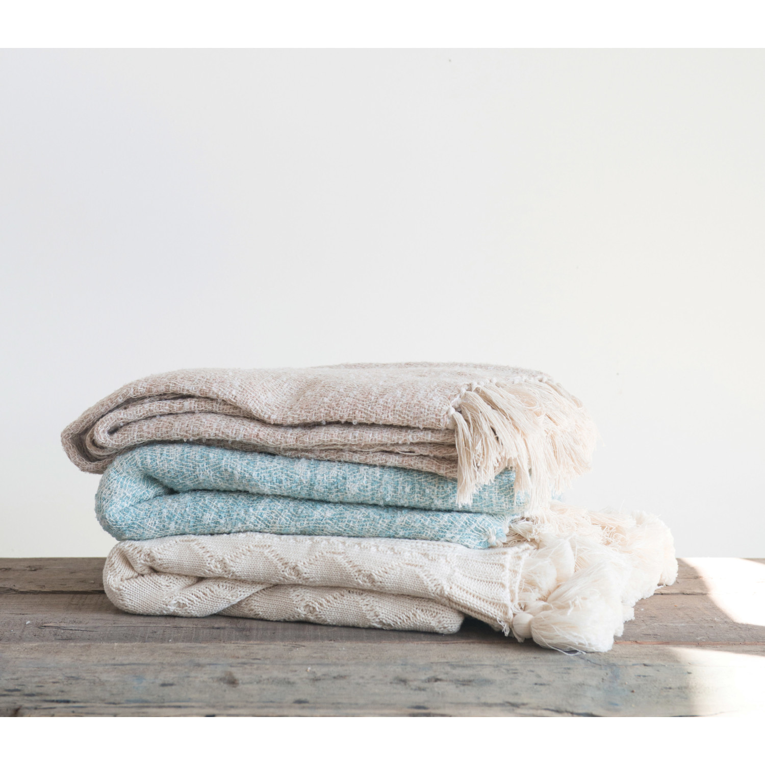 Cable Knit Cotton Throw with Tassels