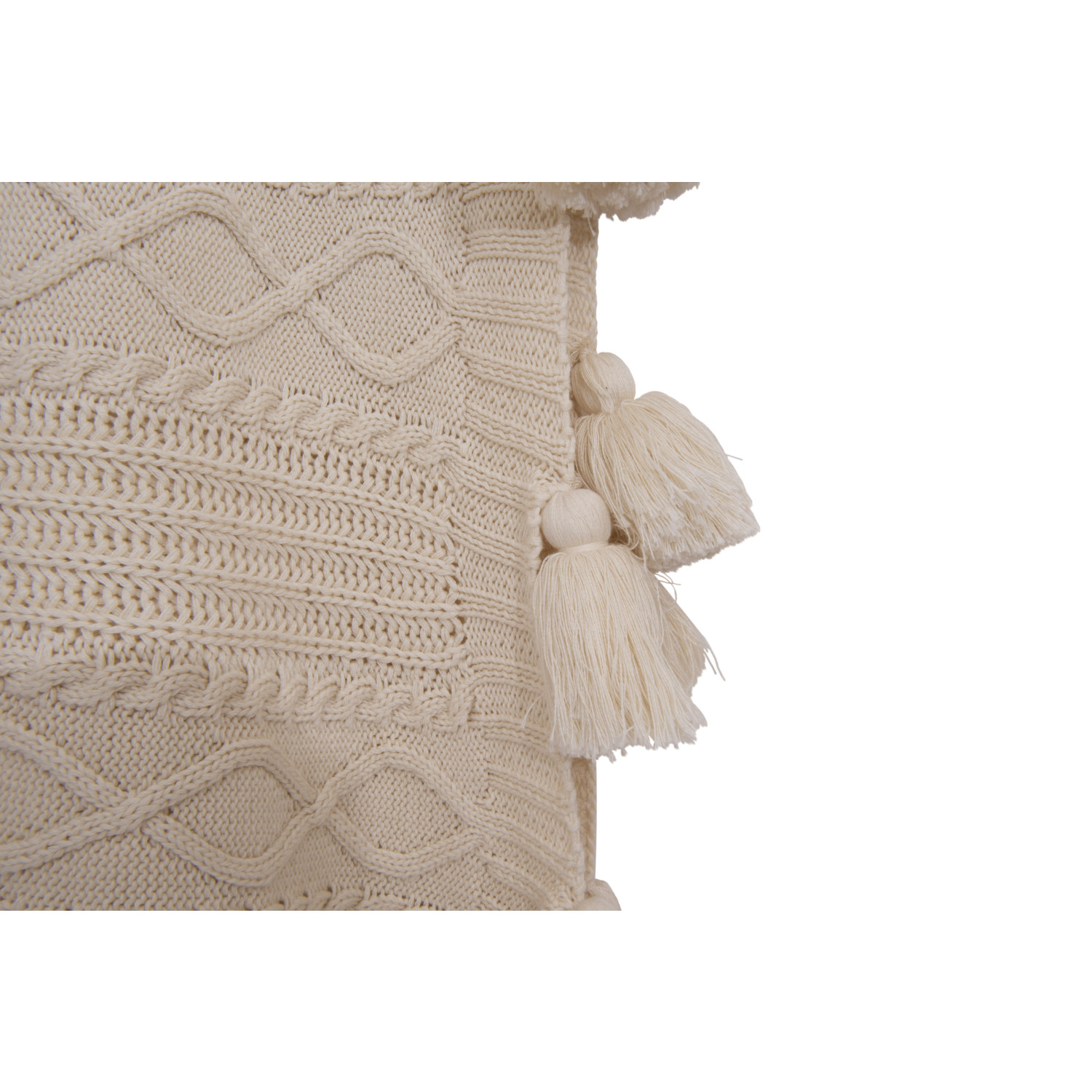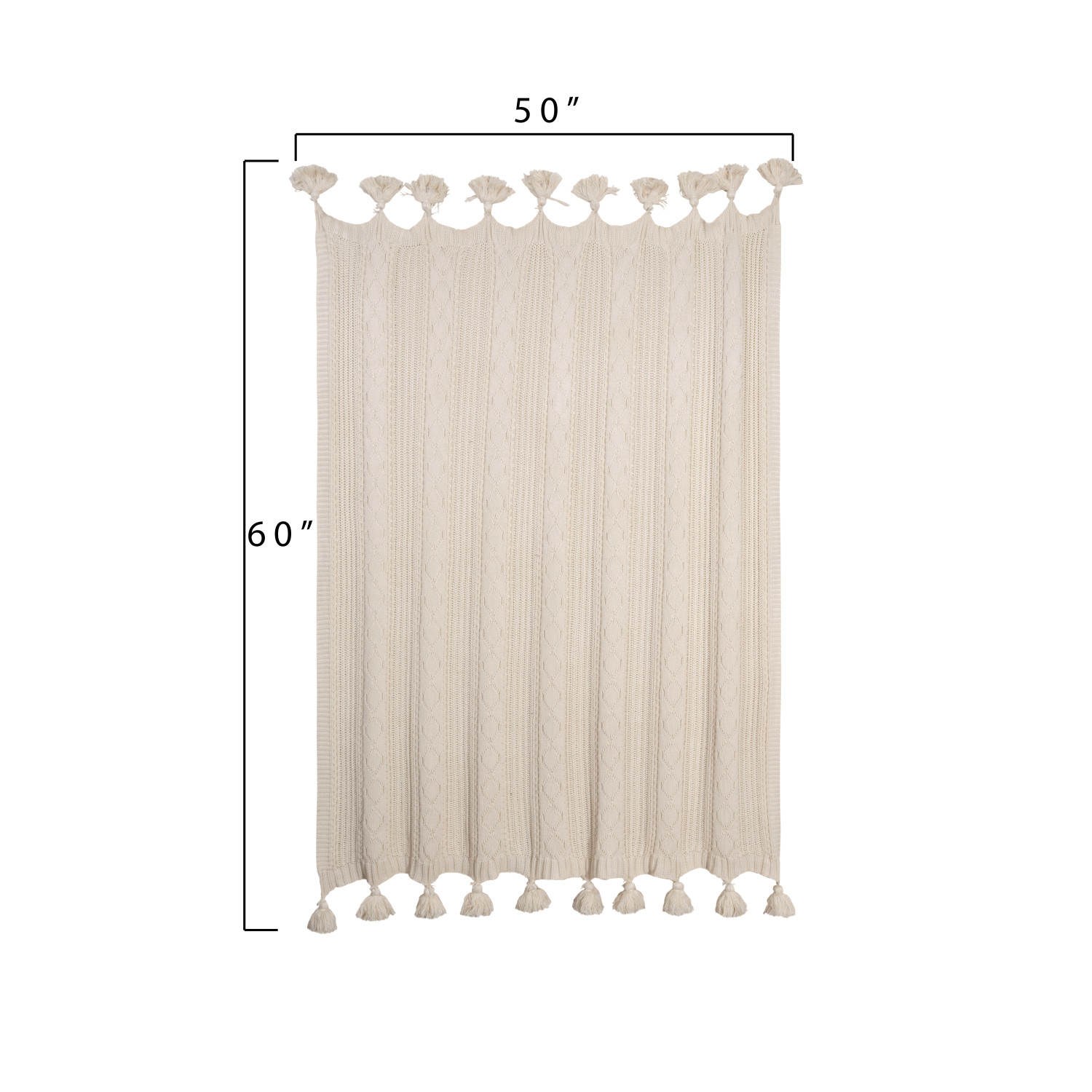 Catalog Name: 60"L x 50"W Cotton Cable Knit Throw w/ Tassels, Natural