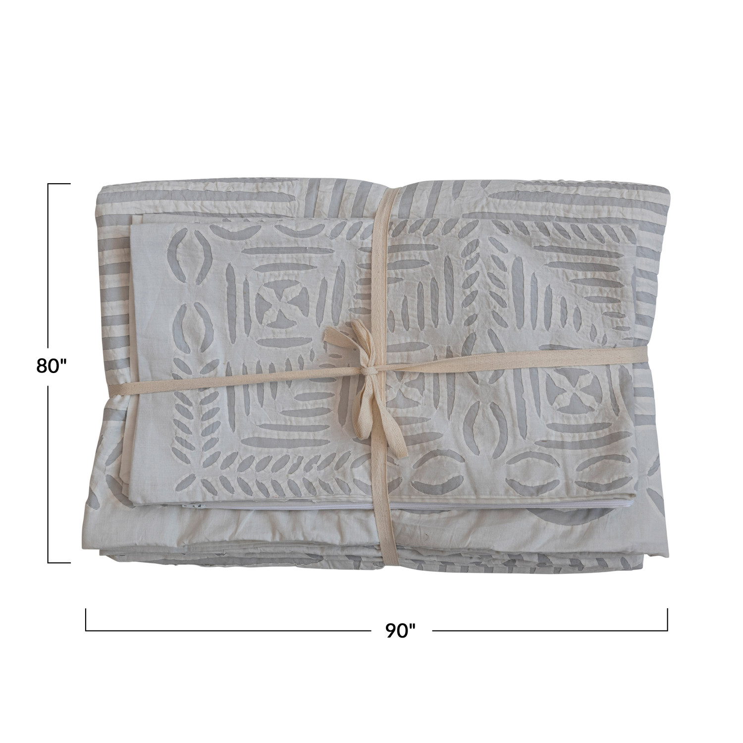 Catalog Name: 90"L x 88"W Handmade Cotton Bed Cover w/ Cutwork & 2 Standard Shams, Queen, White & Grey, Set of 3
