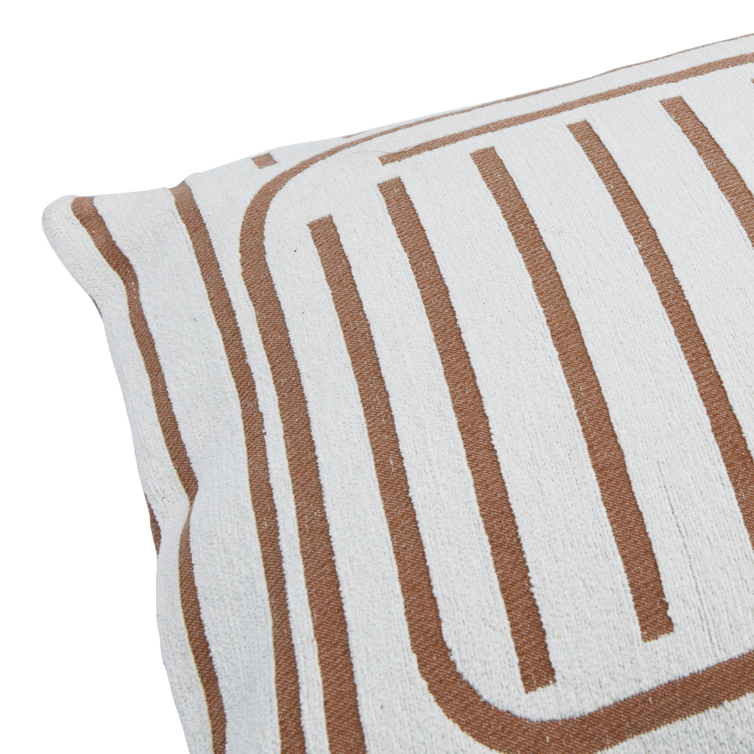 This contemporary throw pillow cover features a geometric line print on durable woven cotton. Square putty and cream cotton throw pillow with geometric line print; Inverse print on back. Express your constantly evolving style with the simple addition of this eye-catching pillow. Removable cotton throw pillow cover with polyester insert; Hidden in seam zipper closure; Machine wash cold, gentle cycle, do not bleach, warm iron if needed.