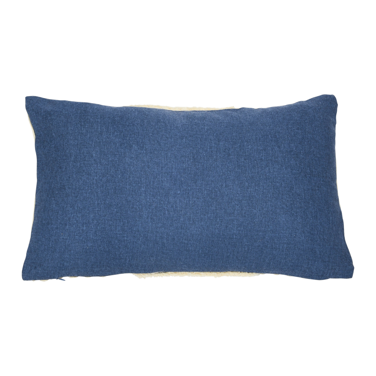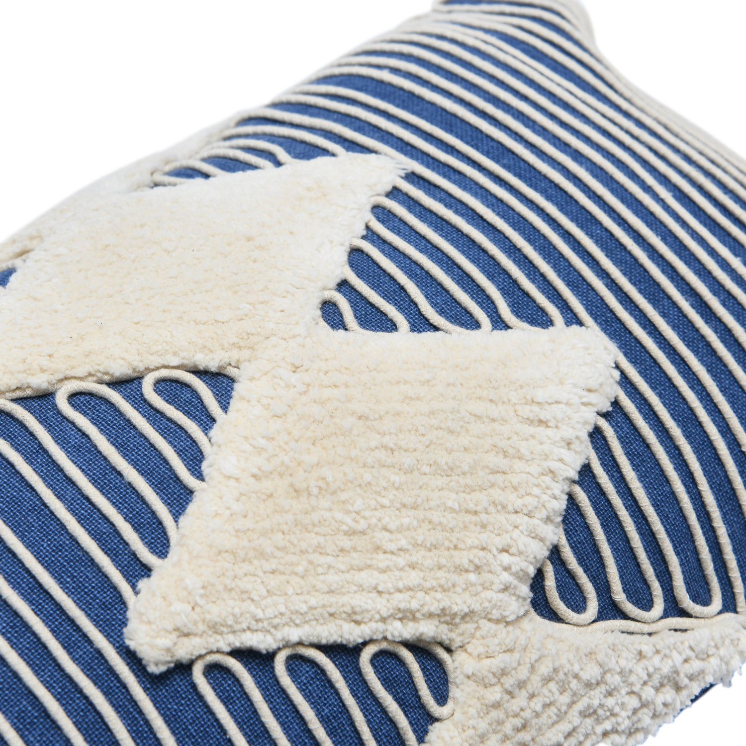 Catalog Name: 20"L x 12"H Cotton Tufted Lumbar Pillow w/ Embroidered Rope Stripes, Blue & Cream Color