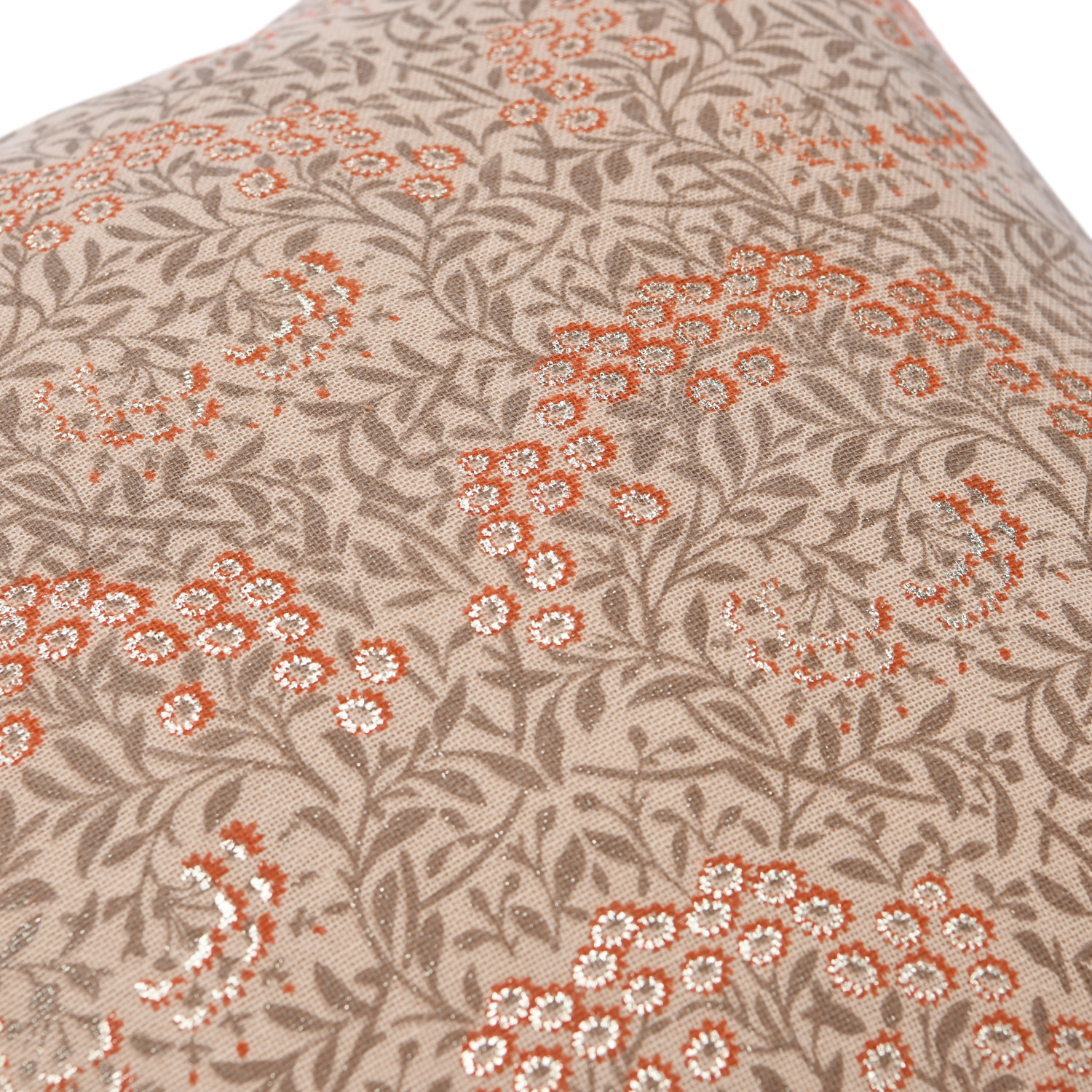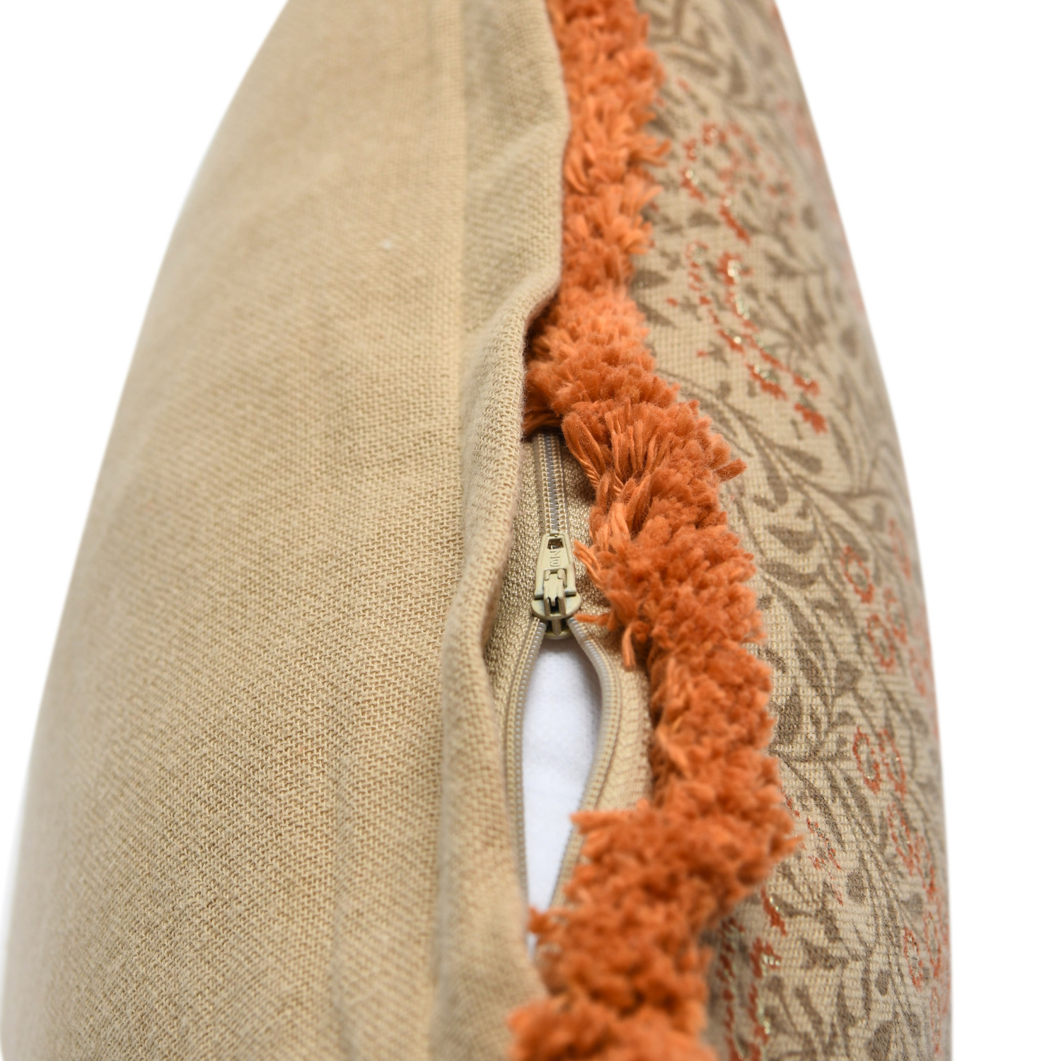 16" Cotton Pillow with Metallic Printed Floral Pattern & Eyelash Fringe