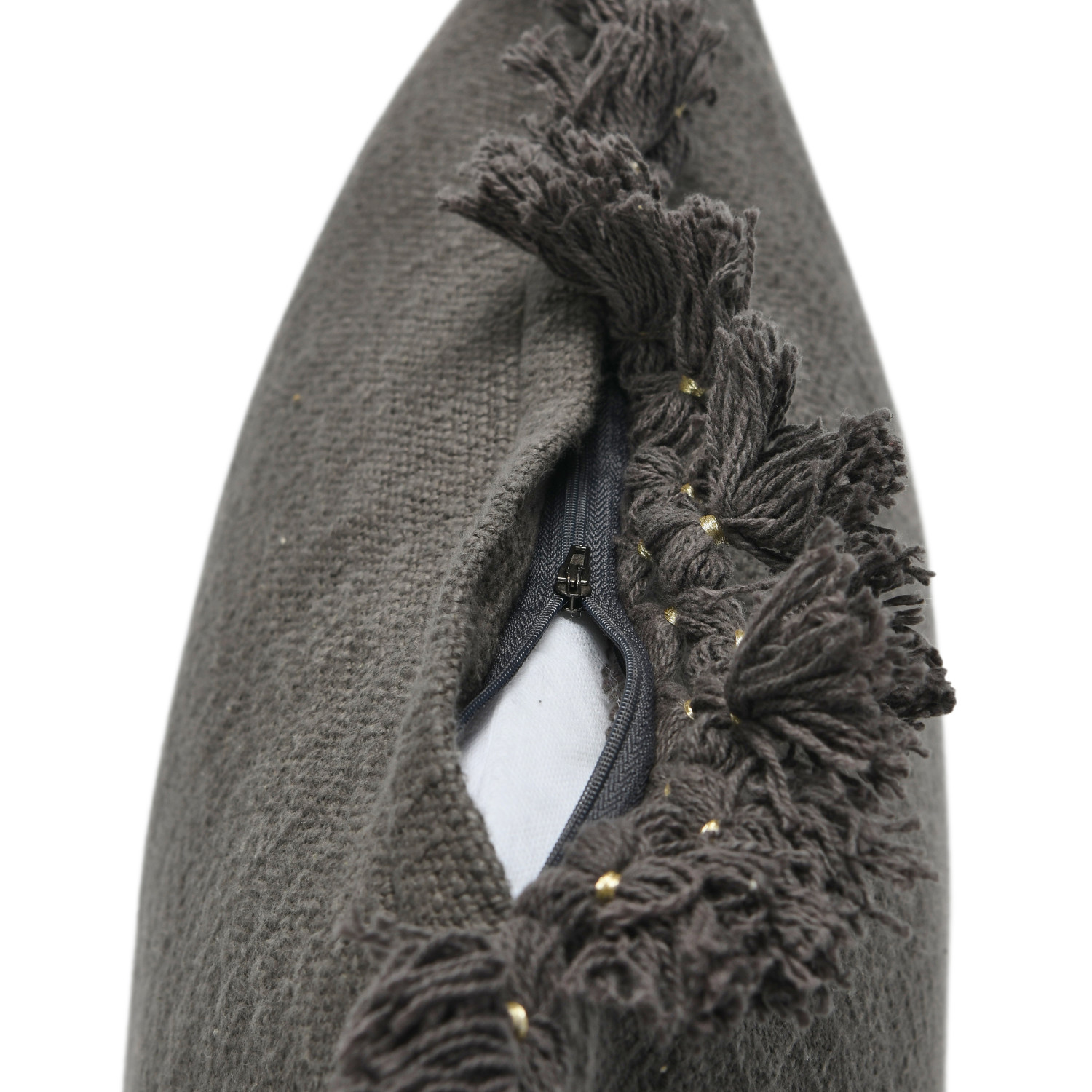 Catalog Name: 20" Square Cotton Slub Pillow w/ Gold Thread Wrapped Tassels, Charcoal Color