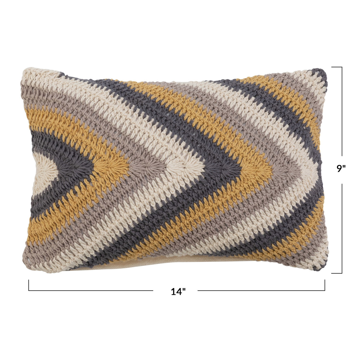 Catalog Name: 14"L x 9"H Cotton Crocheted Lumbar Pillow w/ Chevron Pattern, Multi Color