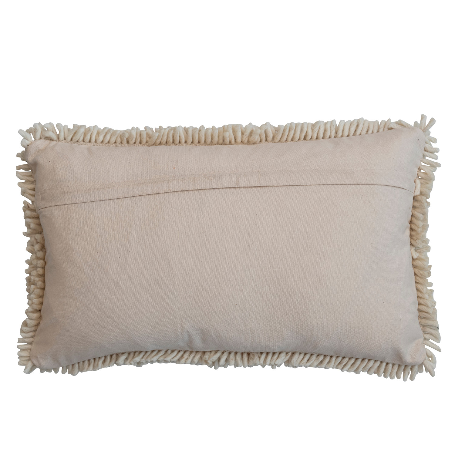 Wool & Cotton Punch Hook Lumbar Pillow, Natural & Peach Color