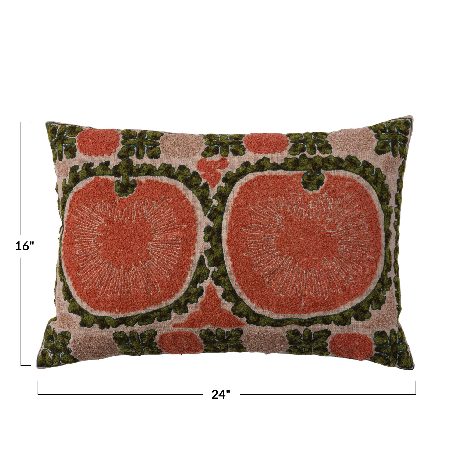 Catalog Name: 24"L x 16"H Cotton Slub Embroidered Lumbar Pillow w/ Design & Chambray Back, Terra-cotta Color & Green