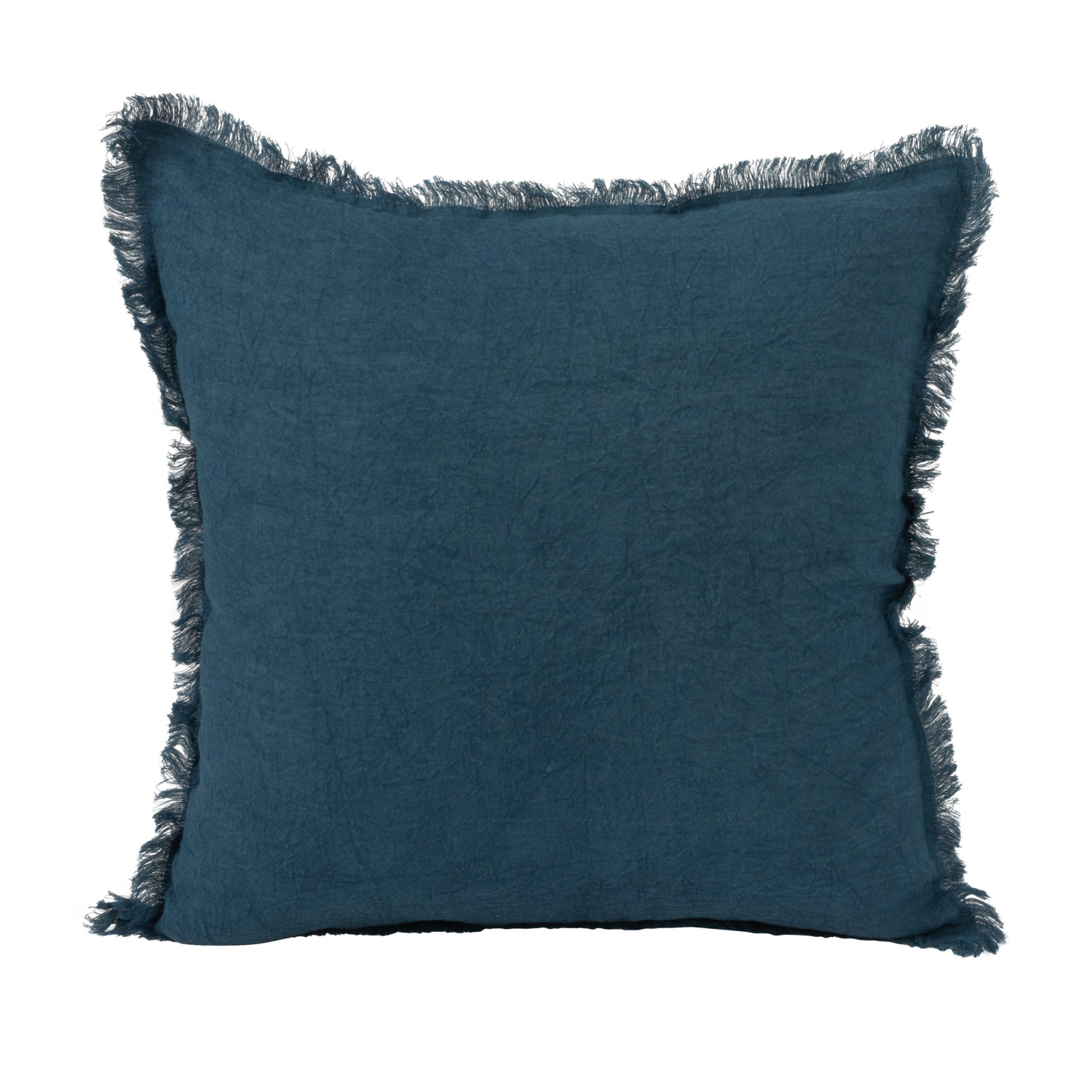 Catalog Name: 20" Square Stonewashed Linen Pillow w/ Fringe, Navy Color