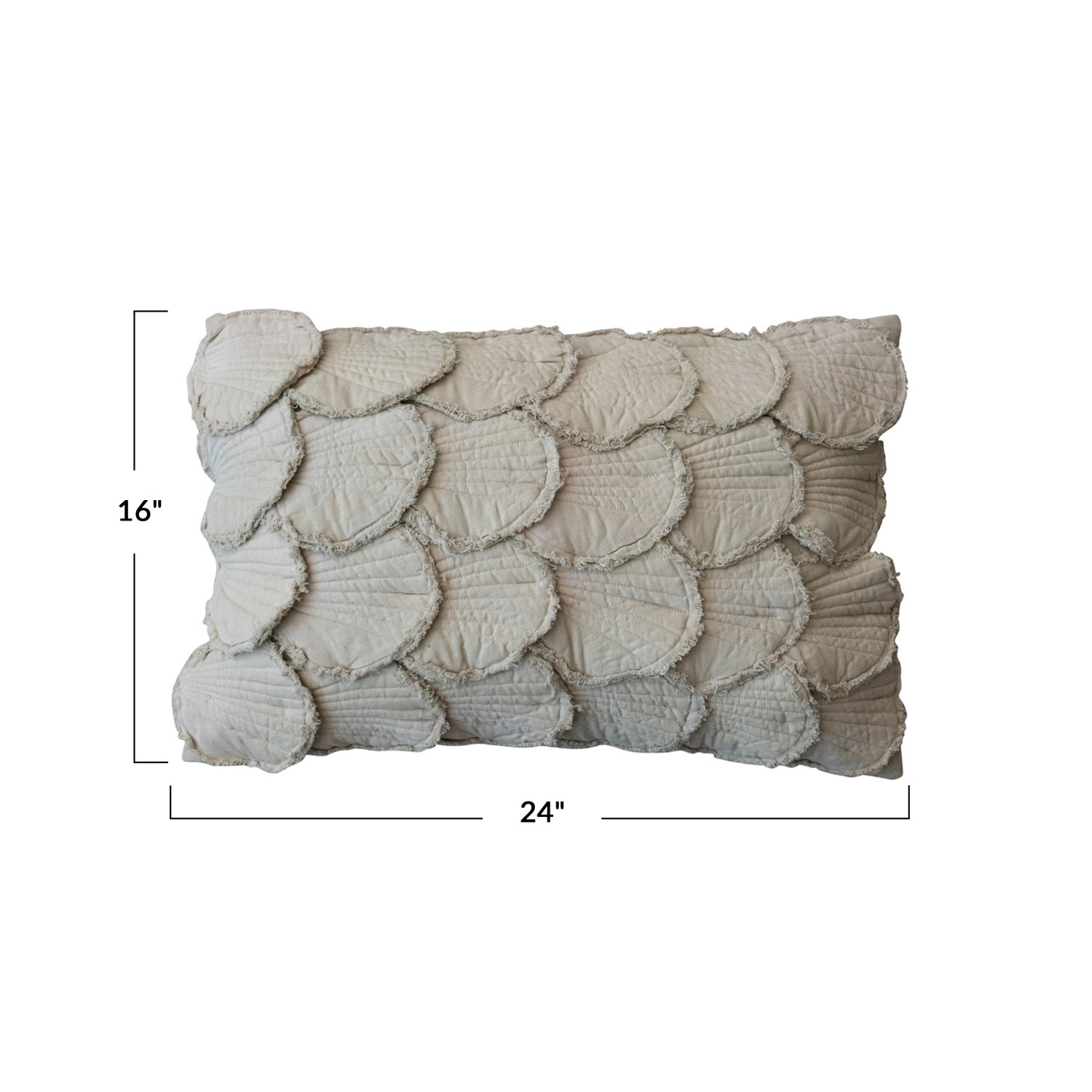 24"L x 16"H Cotton Lumbar Pillow w/ Appliqued Quilted Shells