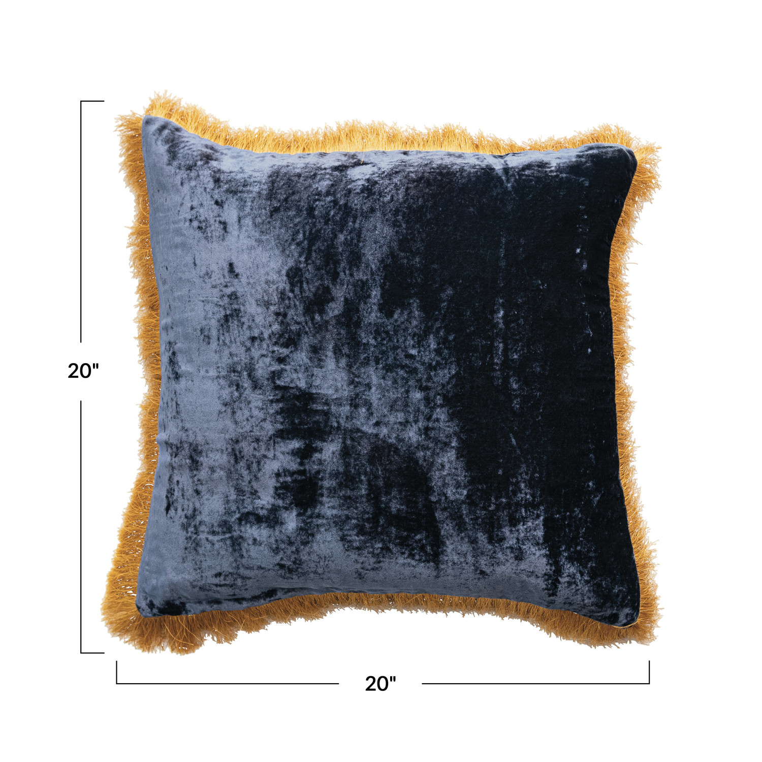 Catalog Name: 20" Square Fabric Blend Pillow w/ Fringe, Navy & Gold Color