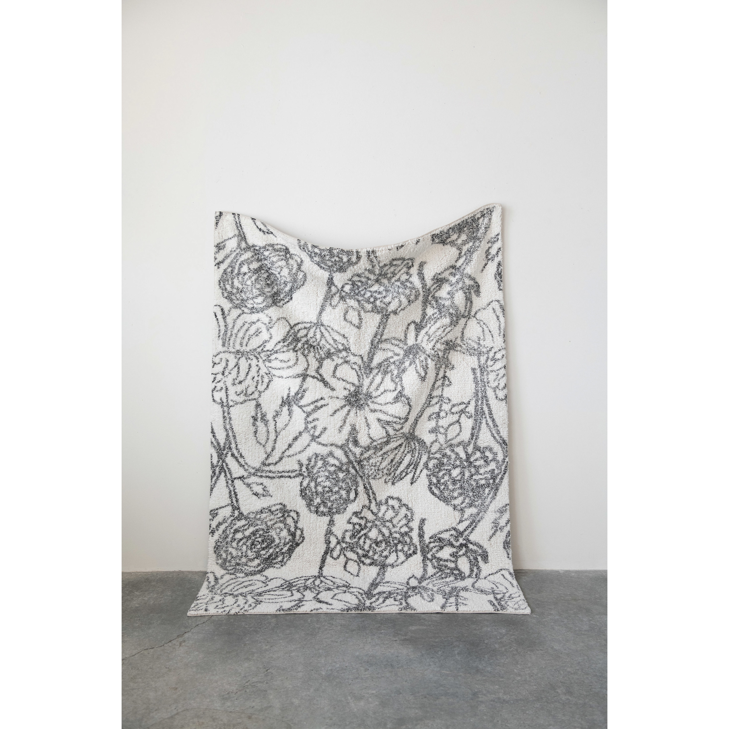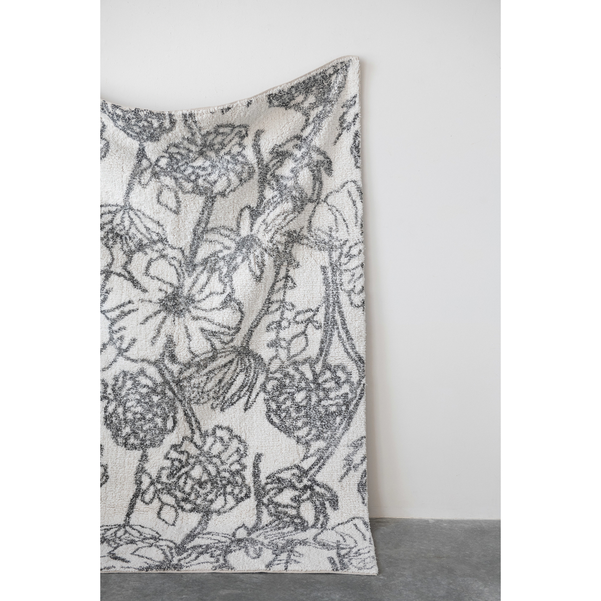 Catalog Name: 4' x 6' Cotton Tufted Rug w/ Flowers, White & Black ©