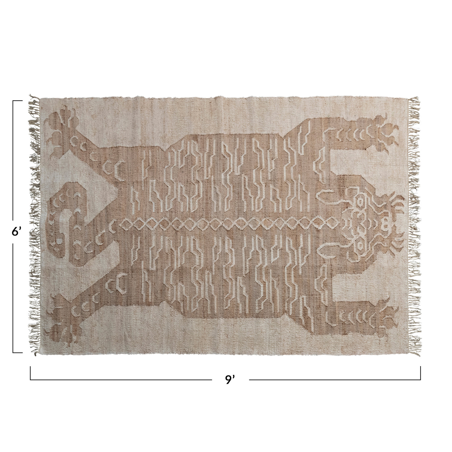 Catalog Name: 6' x 9' Hand-Woven Cotton & Jute Rug w/ Tibetan Tiger & Fringe, Natural & Brown