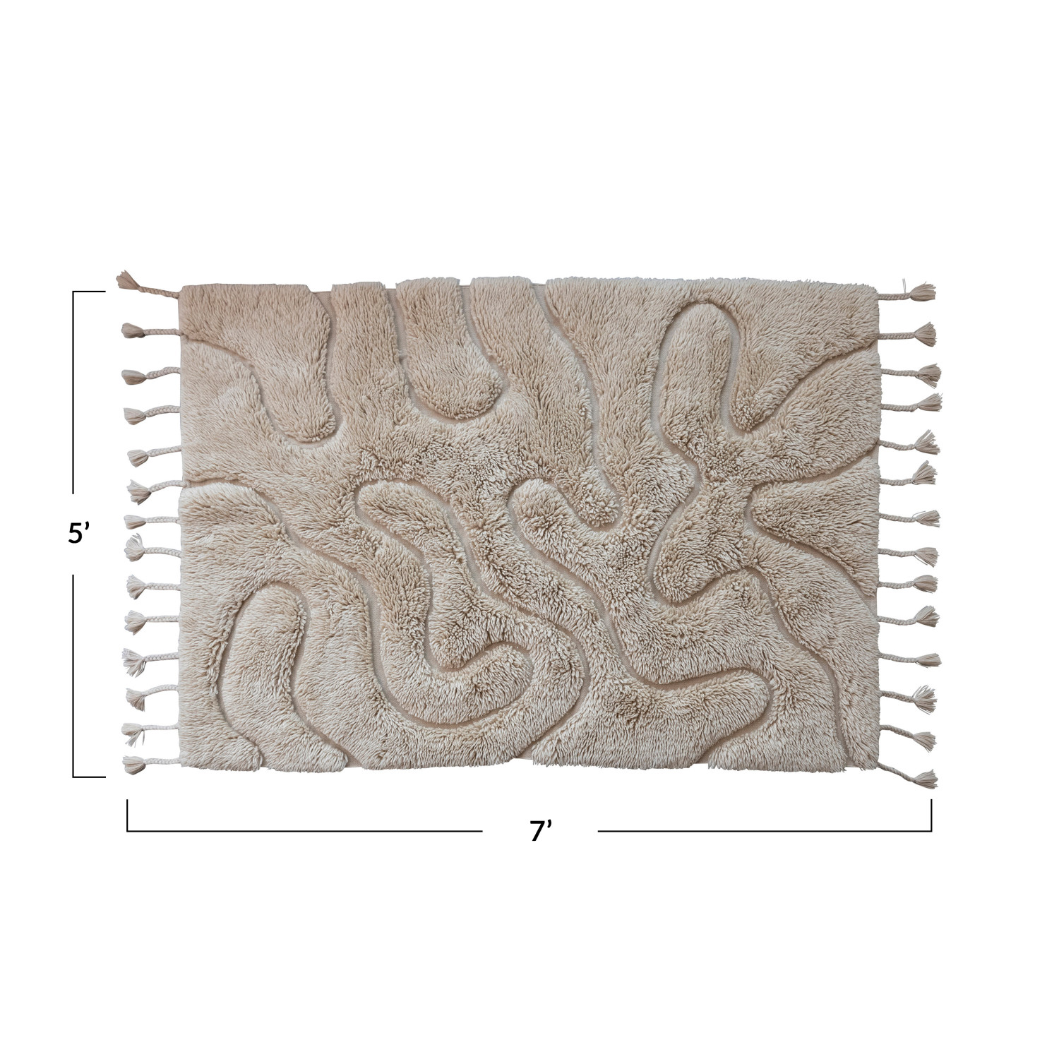 Catalog Name: 5' x 7' New Zealand Wool & Cotton Tufted Rug w/ Design & Braided Tassels, Tan Color