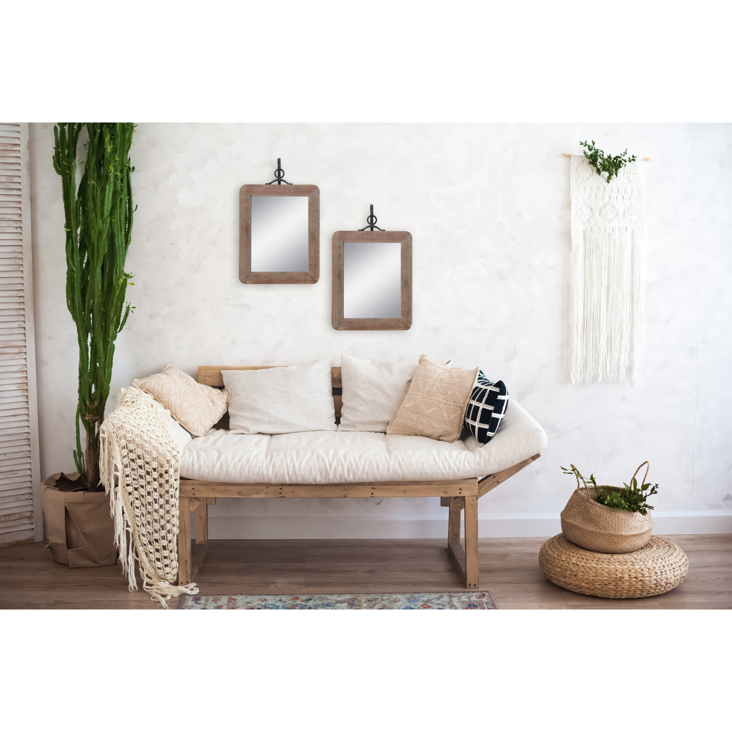 Wood Framed Wall Mirror with Bracket, Set of 2
