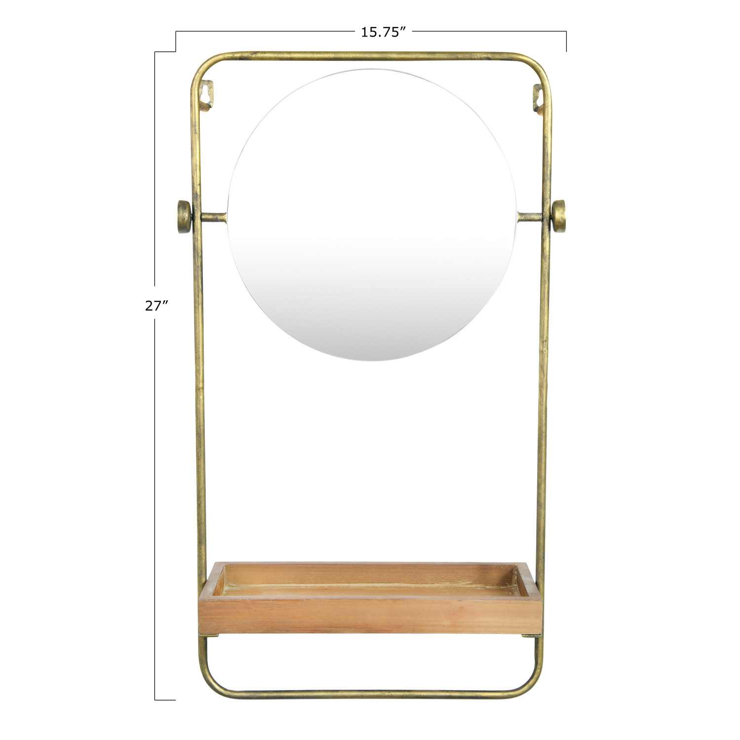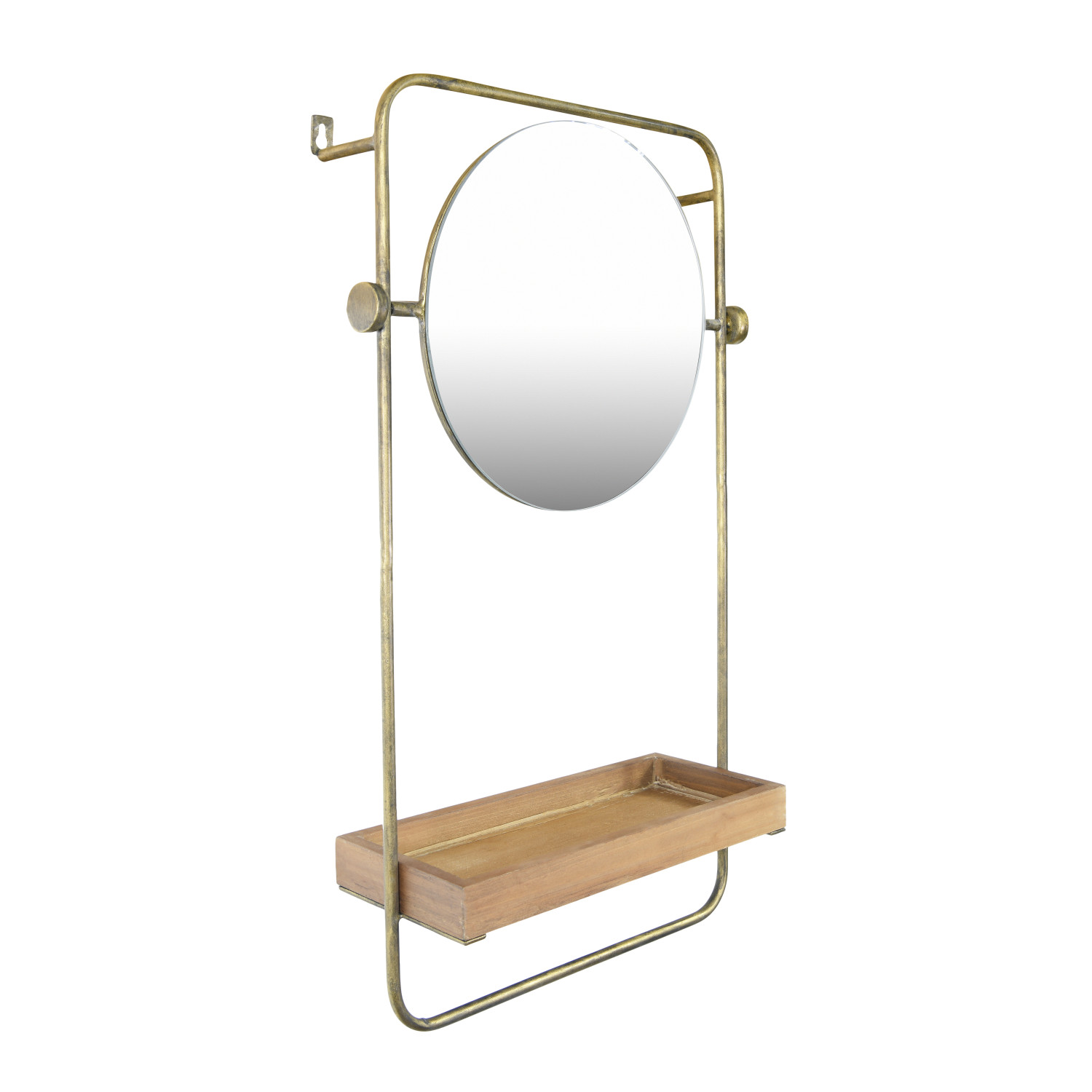 This vintage-inspired oval mirror has an antique gold finish that is reminiscent of years past. Display it in the bathroom with toiletries securely placed on the attached shelf. Hang a decorative towel on the bottom rod for a complete and unique wall decor.