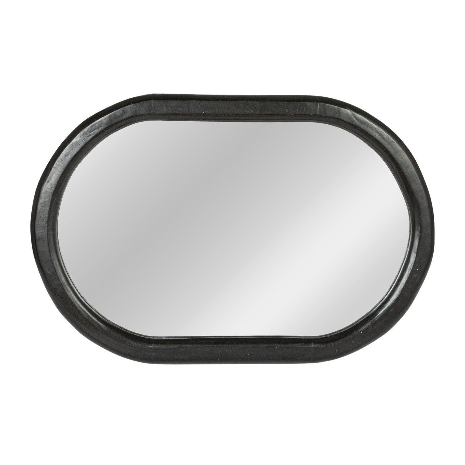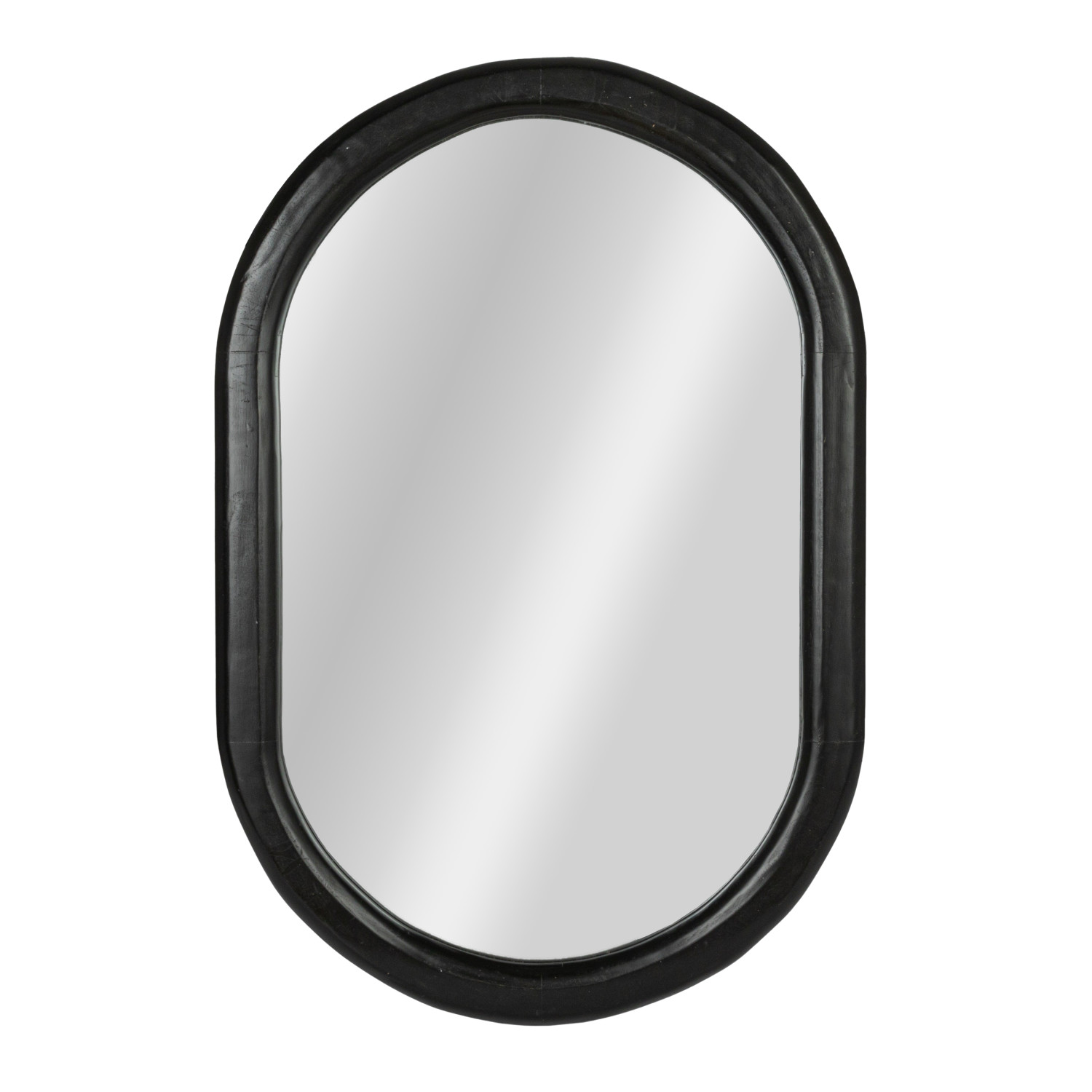 Catalog Name: 23-1/2"W x 35-1/4"H Oval Mango Wood Framed Wall Mirror, Black, Truck Ship (Hangs Vertically & Horizontally)
