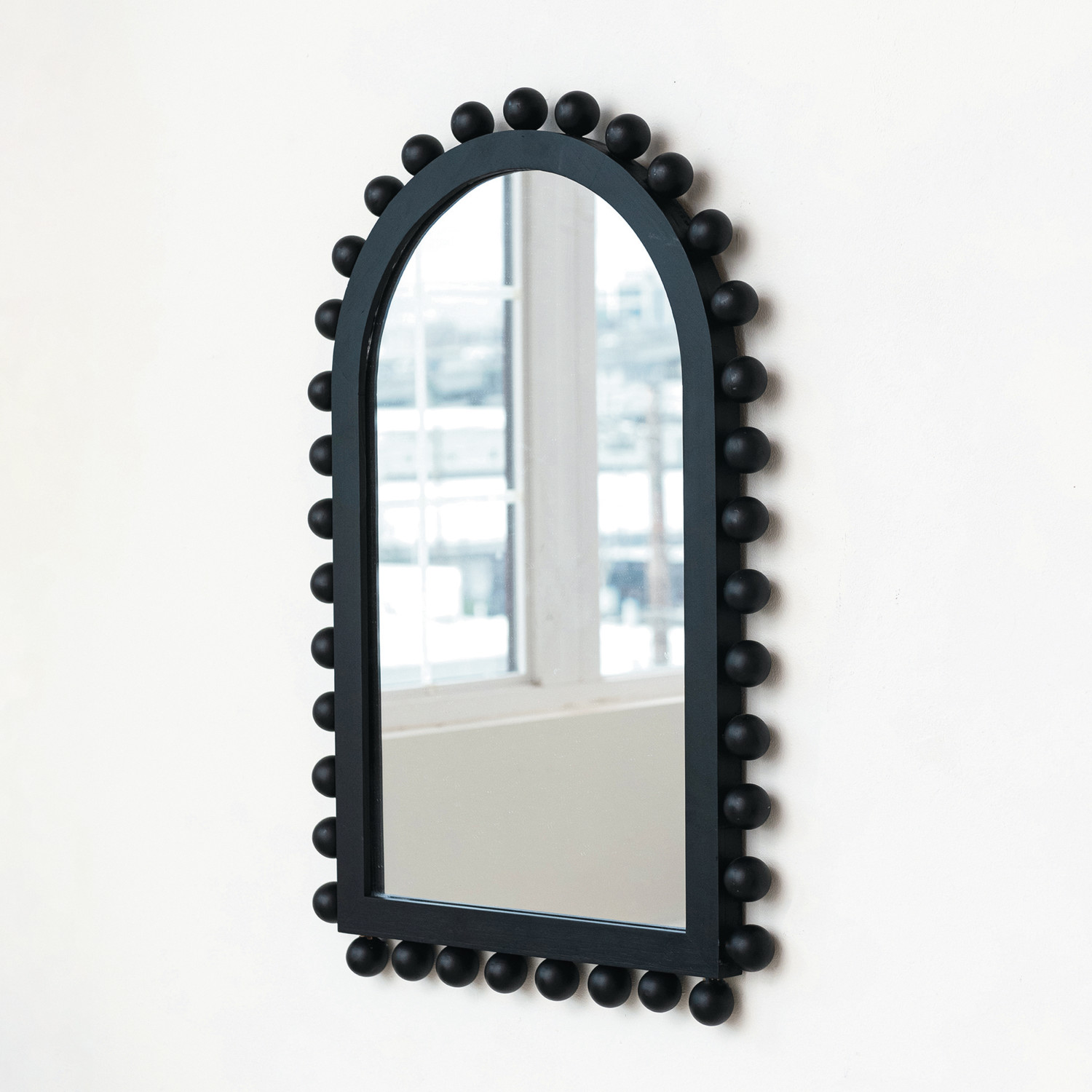 Wood Ball Framed Arched Wall Mirror, Black