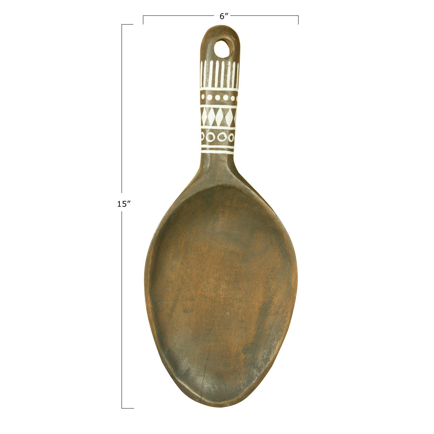 Catalog Name: 6"W x 15"H Decorative Mango Wood Wall Hanging Spoon w/ Hand-Painted White Pattern, Natural