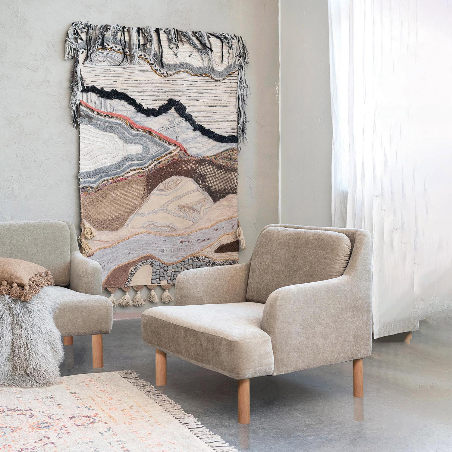 Hand-Woven Cotton Blend Wall Hanging w/ Wood Hanger, Varying Pile Height