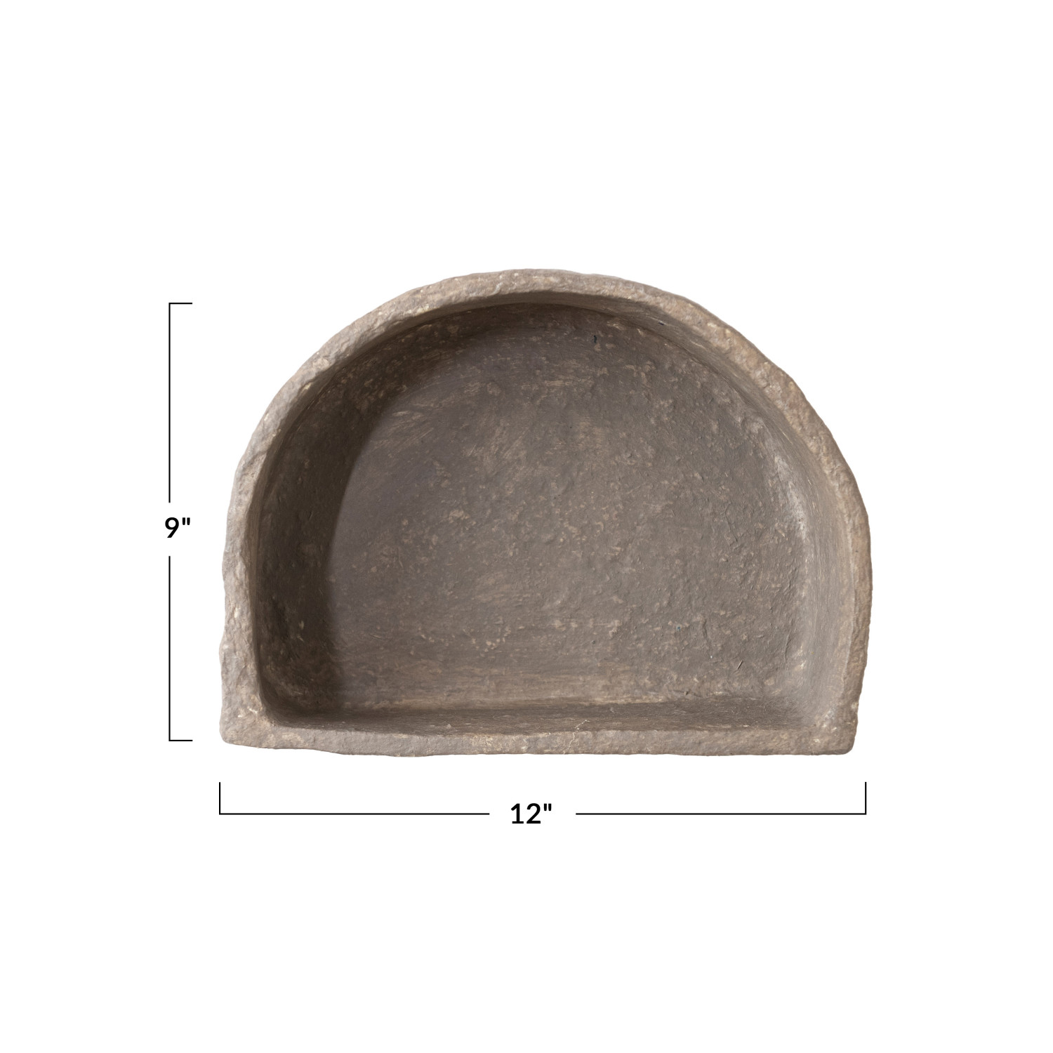 Catalog Name: 12"W x 4"D x 9"H Handmade Paper Mache Semicircle Wall Shelf, Taupe (Hangs or Sits) (Each One Will Vary)