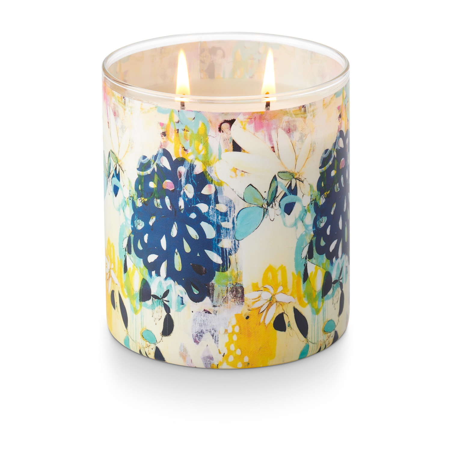A limited edition sleeved glass candle featuring the abstract paintings of ILLUME founder, Lynette Reed.