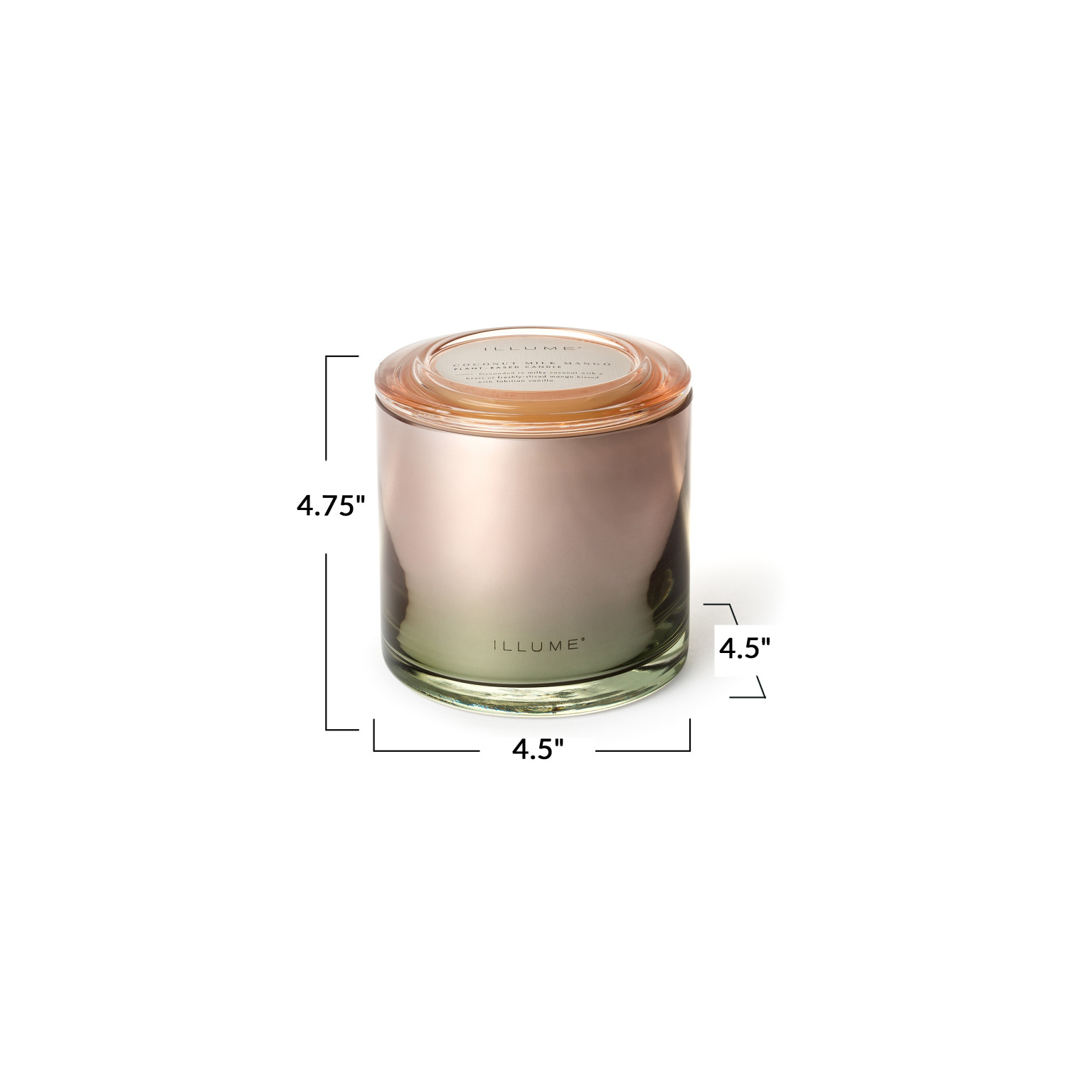 This scent is grounded in milky coconut, with a hearty of freshly sliced mango, and kissed with Tahitian vanilla. Designed as a centerpiece, the statement glass is a lidded, 3-wick, high shine beauty with a warm ombre glow that gets better with every burn. Burn time up to 60 hours.