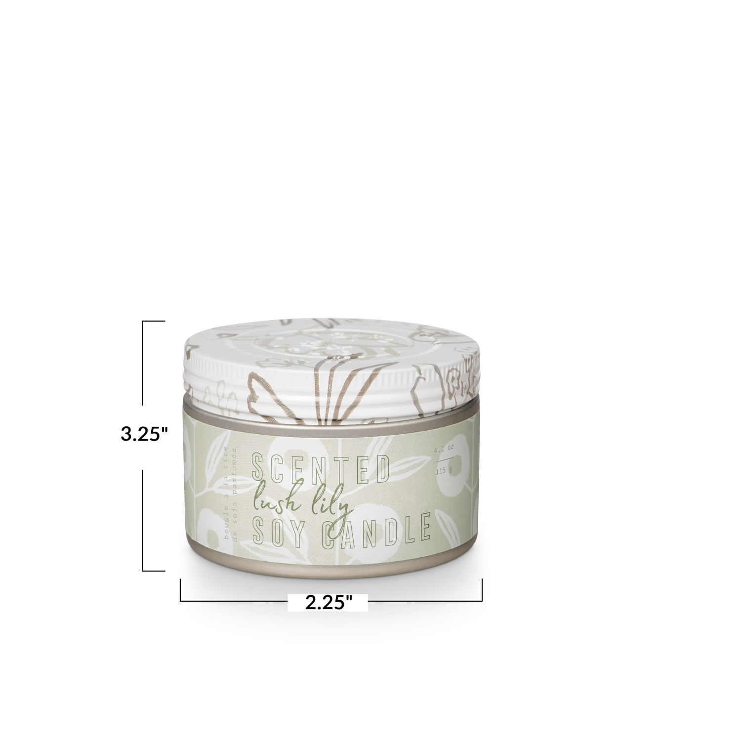 Fresh and familiar for every room in the house. Great for gifting, the small tin with colored wax and a decorative wrap label makes a perfect addition to seasonal home decor. Design details like hand illustration and embossed lids add quality and style. This scent features notes of citrus, gardenia, and palm. Plant-based soy blend candle poured in the USA. Thoughtfully designed from wax to wick, our candles add warmth and ambiance to any interior design scheme. Burns up to 20 hours; 1 wick.