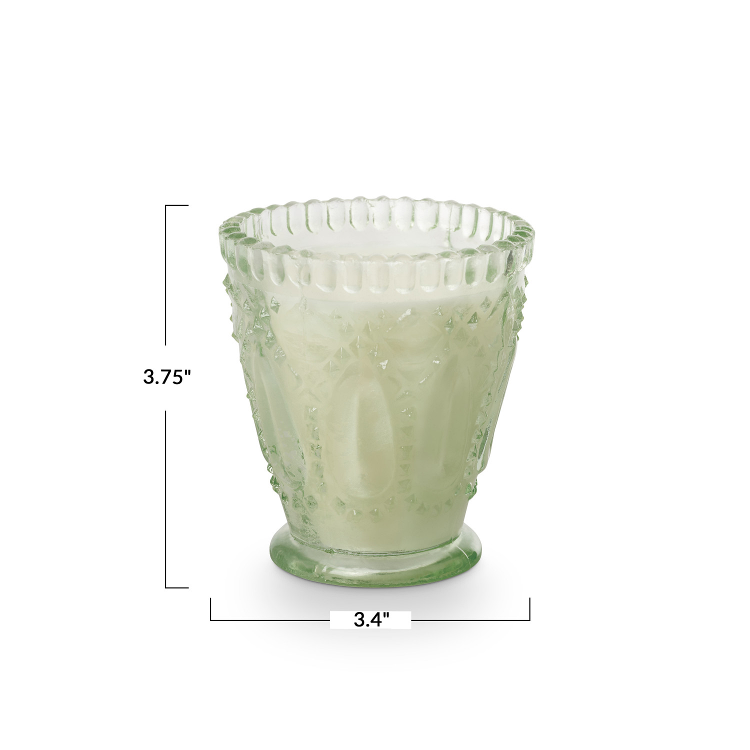 Fresh and familiar for every room in the house. With an heirloom quality to it, the pressed glass has vintage appeal with delicate patterns and a footed base. This scent features notes of silver sage, rosemary, and clove bud. Plant-based soy blend candle poured in the USA. Thoughtfully designed from wax to wick, our candles add warmth and ambiance to any interior design scheme. Burns up to 30 hours; 1 wick.
