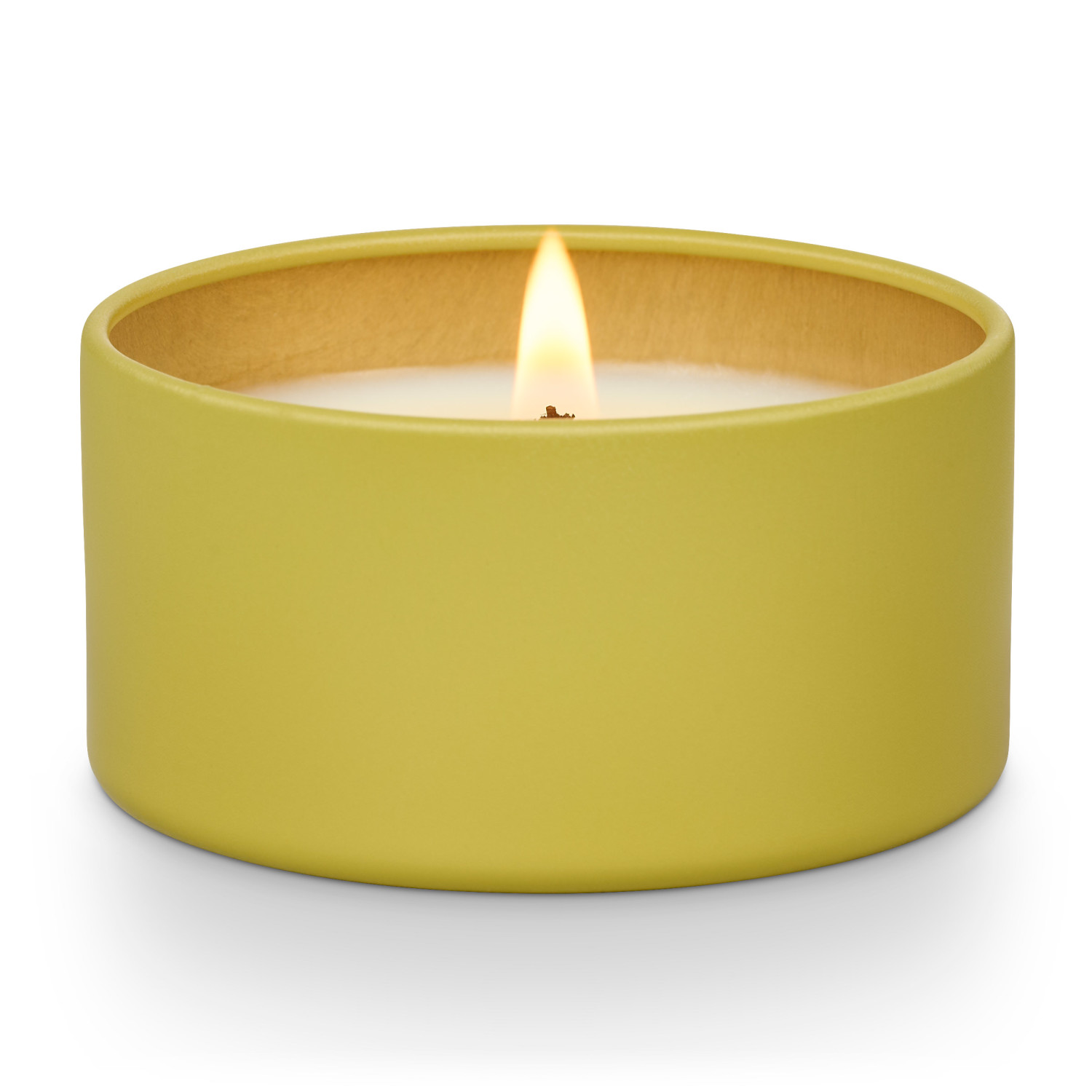 Inhale a fresh start inspired by the earthy green of the growing garden. Steeped in a Cali-cool vibe, these simple designs pair with a hint of retro throwback. With a natural cork lid and soothing matte color palette, these petite tins fit into any space. This scent features a fresh spritz of lemon-lime, rose, and soothing green tea. Plant-based soy blend candle poured in the USA. Thoughtfully designed from wax to wick, our candles add warmth and ambiance to any interior design scheme. Burns up to 10 hours; 1 wick.