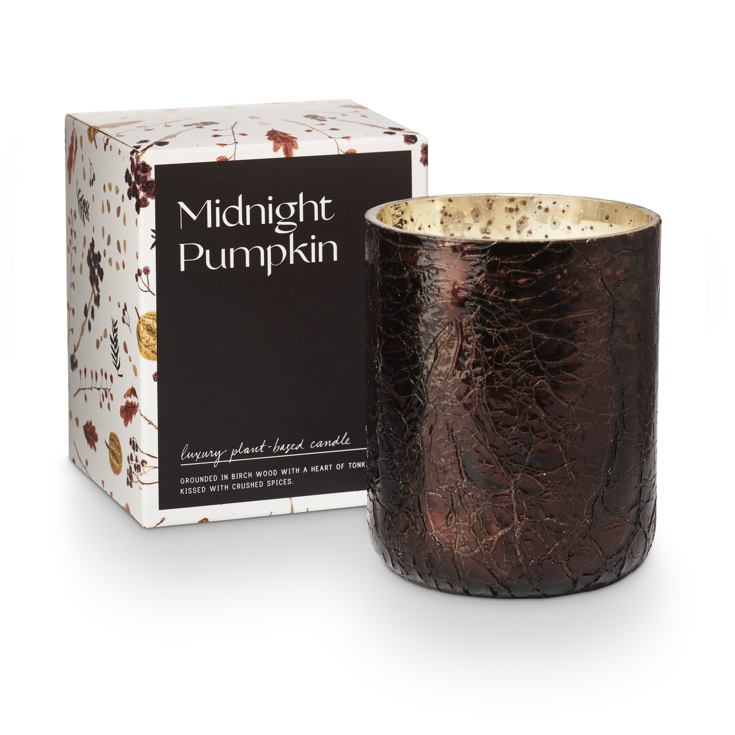 Catalog Name: Midnight Pumpkin Small Boxed Crackle Glass Candle